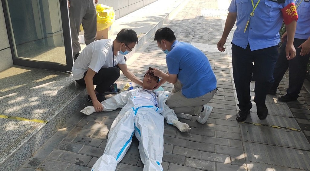 ±¾´ÎÑÝÁ·ÏÖ³¡Ä£Äâµ³Ô±Ö¾Ô¸ÕßÔÚЭÖúÒ½»¤ÈËÔ±½øÐкËËá¼ì²âʱ£¬ÒòÌìÆøÑ×ÈÈ£¬ÇÒÖ¾Ô¸ÕßÒÂ×ÅÒ»¼¶·À»¤ÉèÊ©£¬³¤Ê±¼äÊÂÇéµÈÔ­Òò£¬Í»È»ÖÐÊîÔε¹¼°ºóÐøÇÀ¾ÈµÄÀú³Ì¡£½Óµ½Çó¾ÈÐÅÏ¢ºó£¬Äþ¾²»·±£²¿Á¢¿Ì×éÖ¯ÏÖ³¡ÈËÔ±¶ÔÖÐÊîÖ¾Ô¸Õß½øÐÐÇÀ¾È£¬°ì¹«ÊÒ±£°²Ô±¡¢ºóÇÚÖÎÀí²¿ËÞÉáÖÎÀíÖ÷¹Ü¡¢ÖÆÔ첿Äþ¾²Ô±¡¢¶¯Á¦²¿Äþ¾²Ô±µÈÈËԱȫ³Ì¼ÓÈëÈËÔ±½ôÇÀ¾ÈÔ®ÖУ¬¾­¹ý¸÷È˵ÄÅäºÏŬÁ¦£¬ÖÐÊîÖ¾Ô¸ÕߺܿìתΣΪ°²¡£